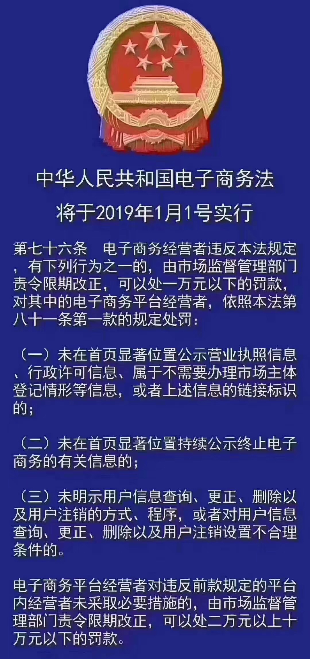 電子商務(wù)法2019年1月1日正式執(zhí)行